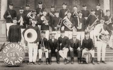 The 2012 Centennial Band (top photo) carries on the spirit of the 1909 City Band (bottom photo).