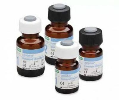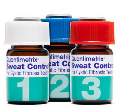 Sweat Control monitors the performance of cystic fibrosis assay methods including Chloridometer, Osmometer, Sweat-Chek conductivity analyzer, and Dimension and Advia. It features extended stability for convenience and less waste.