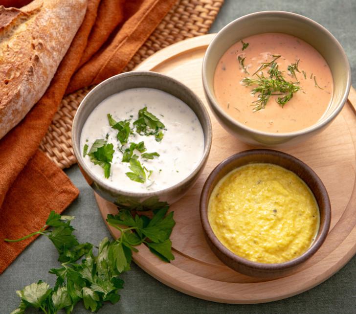 Was wäre Raclette ohne die passenden Dips? Klassiker wie Knoblauch-, Joghurt- oder Avocado-Dip sind immer beliebt. Etwas raffinierter wird es mit Preiselbeersenf, Currymayo oder einer leichten Honig-Senf-Sauce Viele Dips lassen sich auch gut vorbereiten – so bleibt mehr Zeit für den geselligen Genuss.