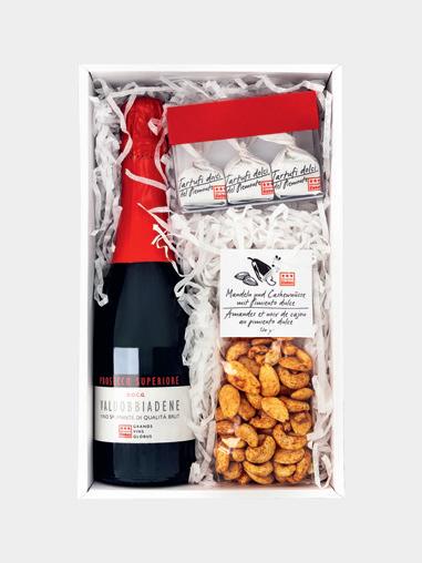 L’idée cadeau la plus cordiale pour les gourmets: la boîte DELICATESSA FOOD & WINE en forme de cœur. Garnie des délices les plus variés, elle en dit plus que mille mots. Cerise sur le gâteau: vous pouvez composer votre boîte selon vos préférences dans nos magasins.