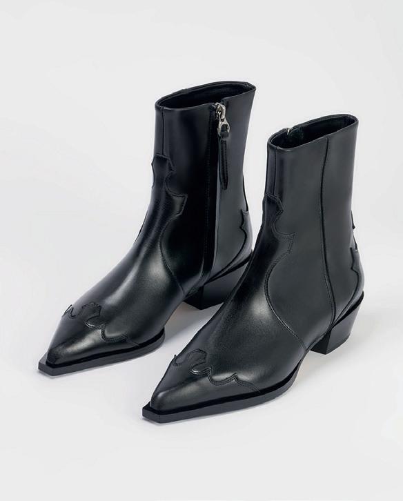 Pour Luisa Dames, fondatrice et directrice artistique de la marque de chaussures et d’accessoires berlinoise Aeyde, l’avenir du luxe est au minimalisme, aux designs impeccables et à la qualité durable. La collection pré-automne 2023 d’Ayede joue subtilement sur les contrastes avec des talons aiguilles dans l’air du temps, d’élégantes ballerines à lacer, des mocassins classiques et des bottines de cow-boy arborant des détails à effet peau de serpent.