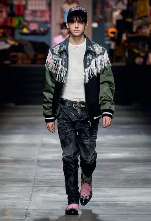 Les frères jumeaux canadiens Dean et Dan Caten ont beau avoir fait des études de stylisme à New York, c’est dans leur pays d’adoption, l’Italie, qu’ils ont véritablement fait la démonstration de l’avantgardisme de leur style situé à la croisée du sportswear et du luxe. Au menu: de la volupté, du glamour et cette envie irrépressible de toujours nager à contre-courant. Leur nouvelle collection séduit par de nombreux clins d’œil et références aux icônes de leur enfance, qui prennent un tout nouveau sens grâce aux matériaux luxueux.