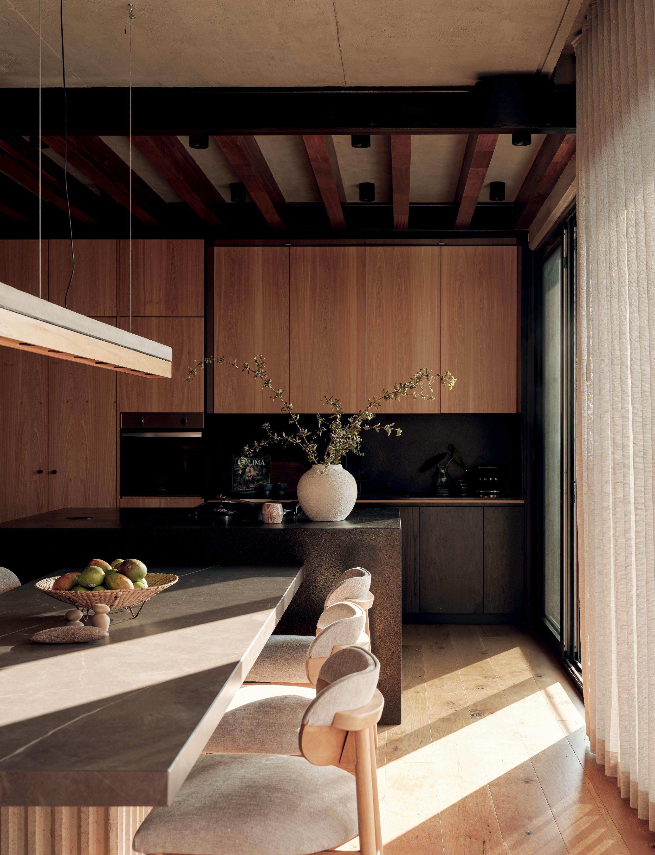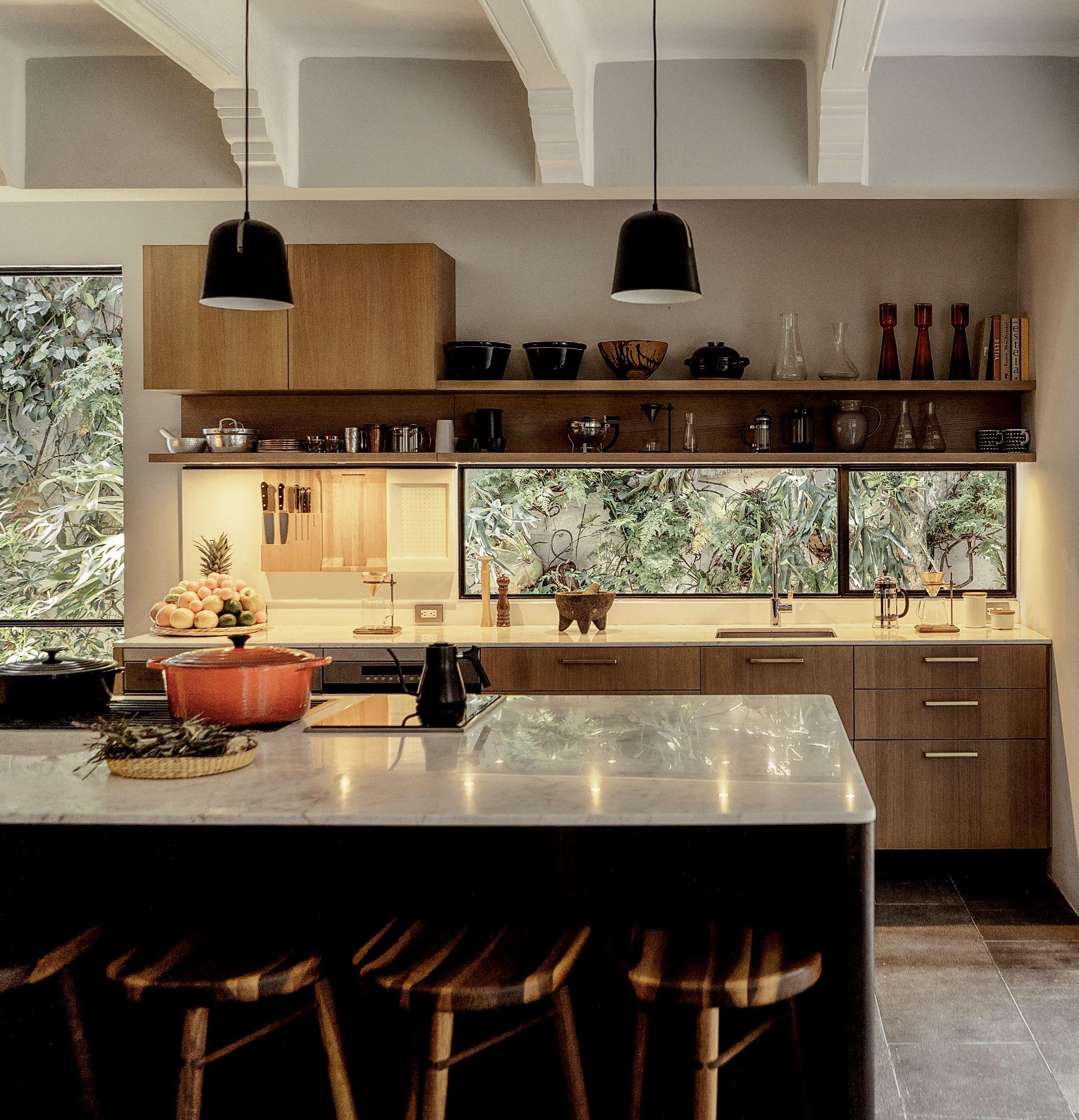 family and social life,” they affirm. Designed by Julianna Morais of Henrybuilt, the kitchen became both centerpiece and catalyst, opening up what were once fragmented rooms into a fluid environment filled with light and connection to the patio.