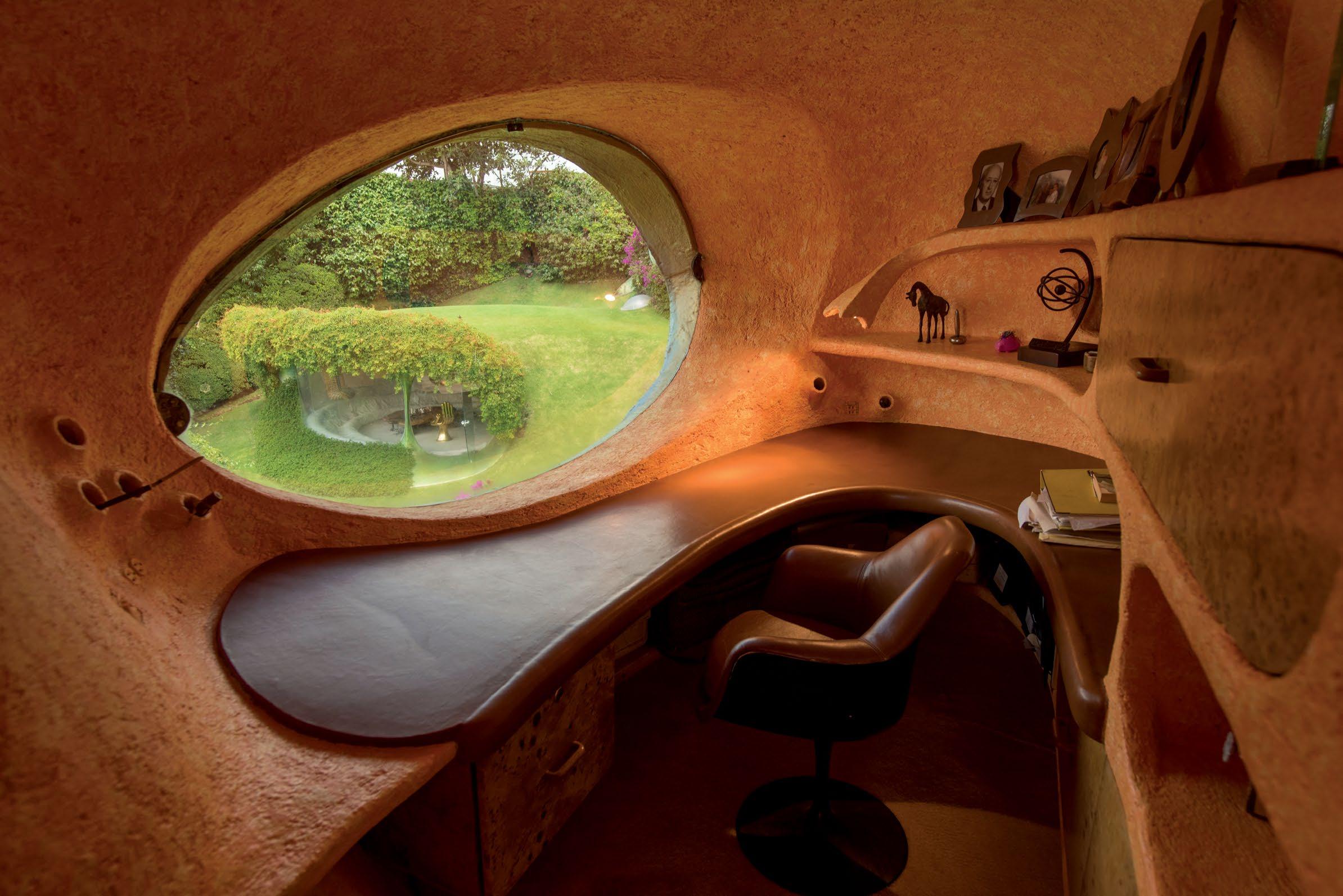 Conceived as a peanut shell, with two lightfilled ovals joined by a narrow, dim tunnel, the house remains a pioneering example of organic architecture in Mexico.