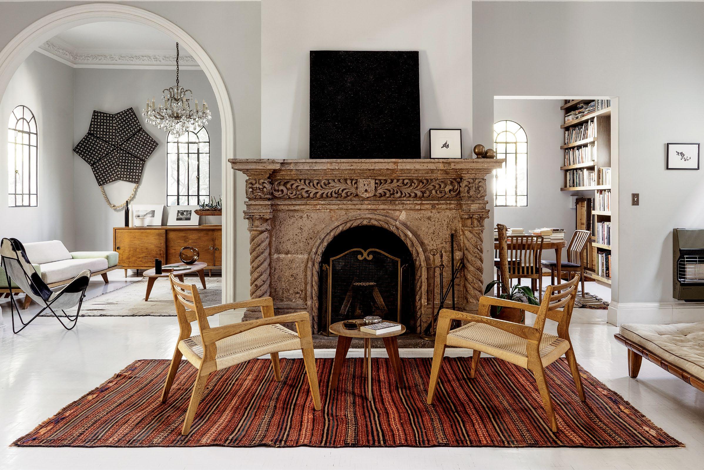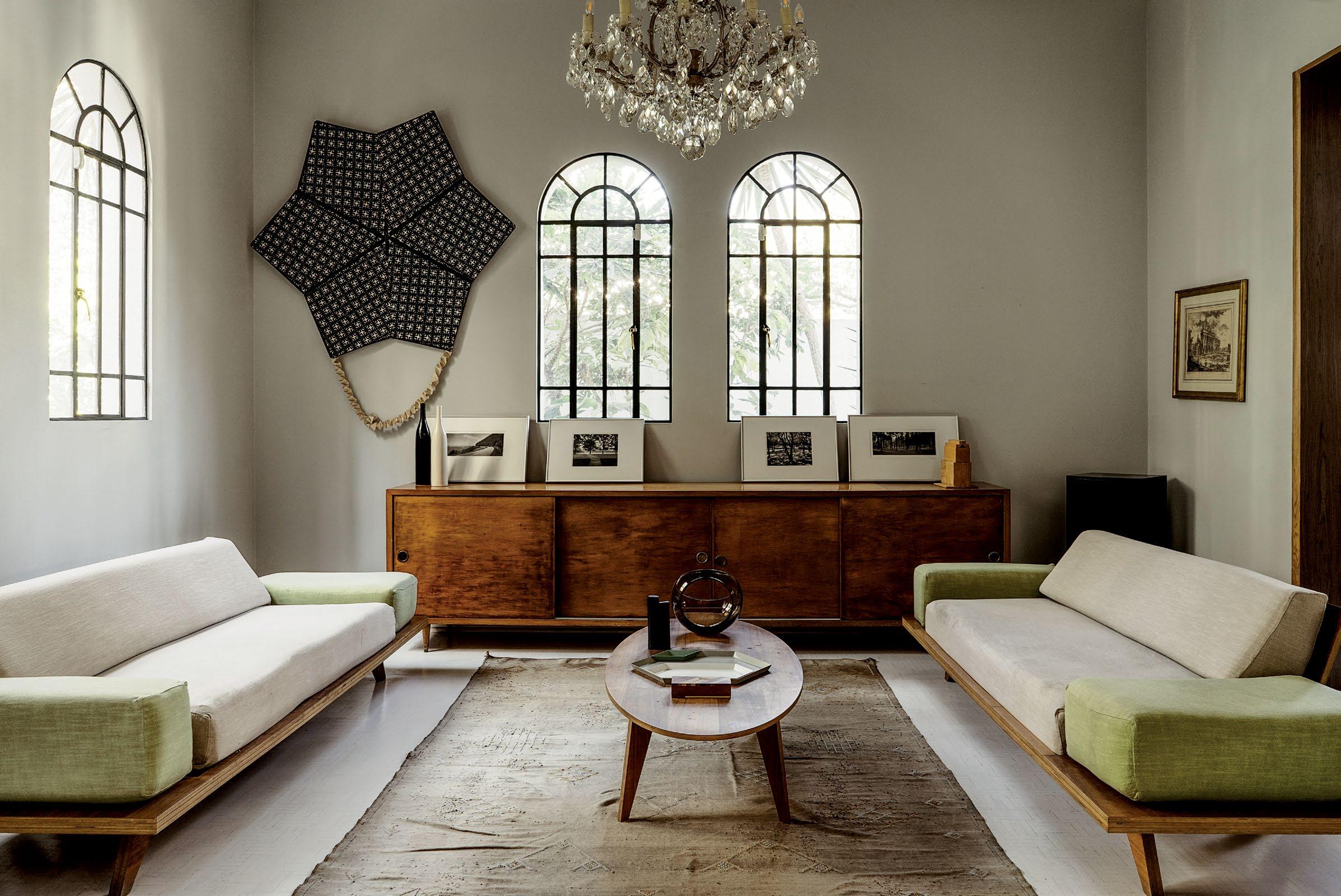 The house also reflects his passion for collecting. Ceramics, textiles, rugs from Africa, and artifacts from Egypt fill the walls and shelves, making it “a very alive house, not the typical architect’s house where everything looks like the render.” Compared with his