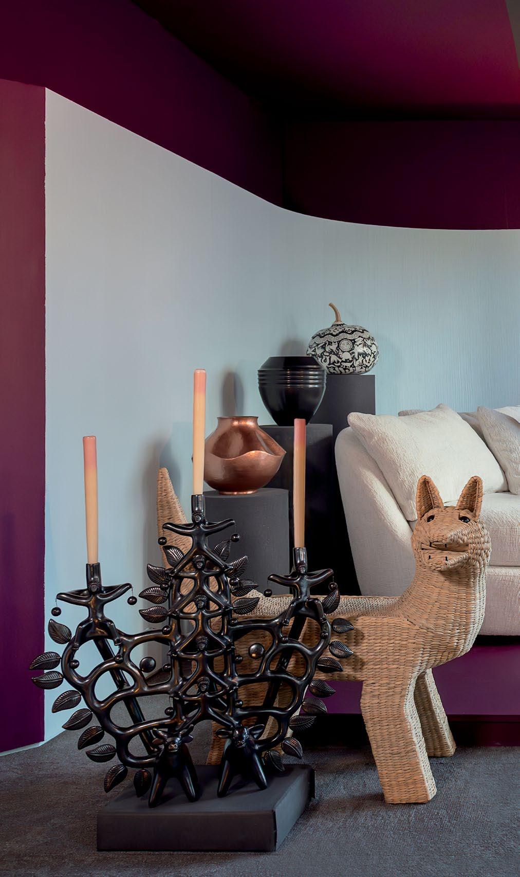 Objects play as crucial a role as architecture. Original 1940s chandeliers, once destined for removal, were preserved and embraced. Furniture and design pieces by friends—Héctor Esrawe’s wood paneling and wine cellar, custom cabinets and stools by La Metropolitana—coexist with textiles from Chiapas, Talavera tiles, rugs by Marisol Centeno, and heirloom antiques. A unique collection of wooden spoons, gathered from travels across Japan, France, Italy, and beyond, fills a sideboard designed specifically to display them. For Saidee and José, these objects embody the soul of the house, bringing stories, affections, and connections into its everyday life.