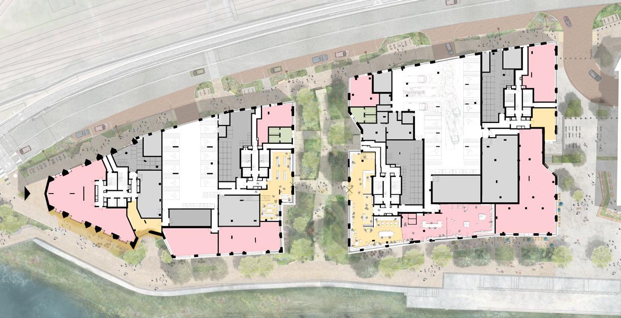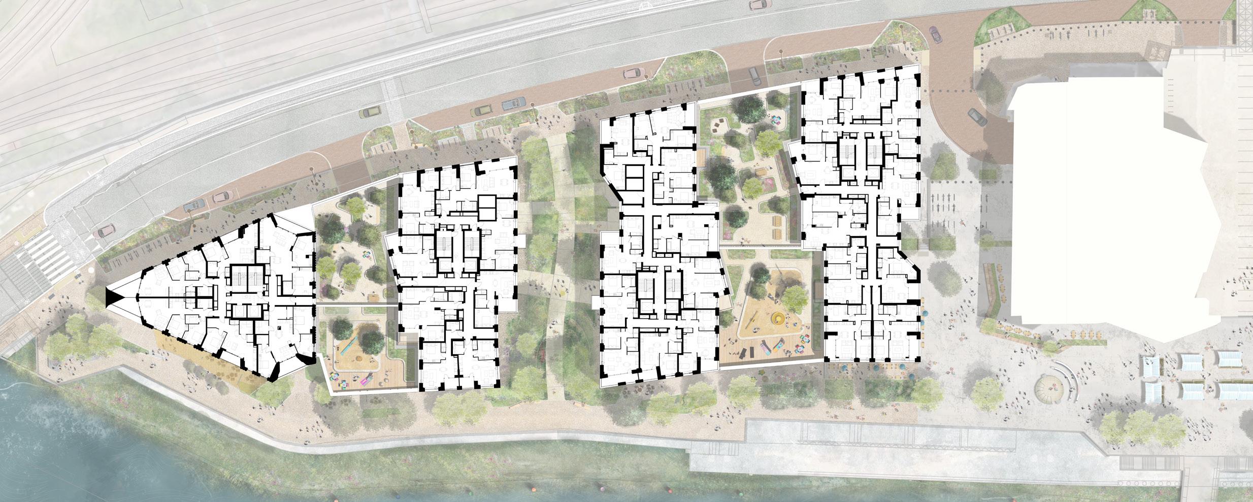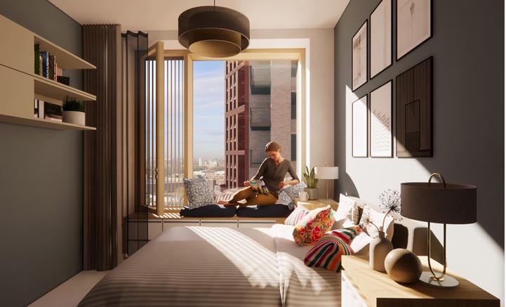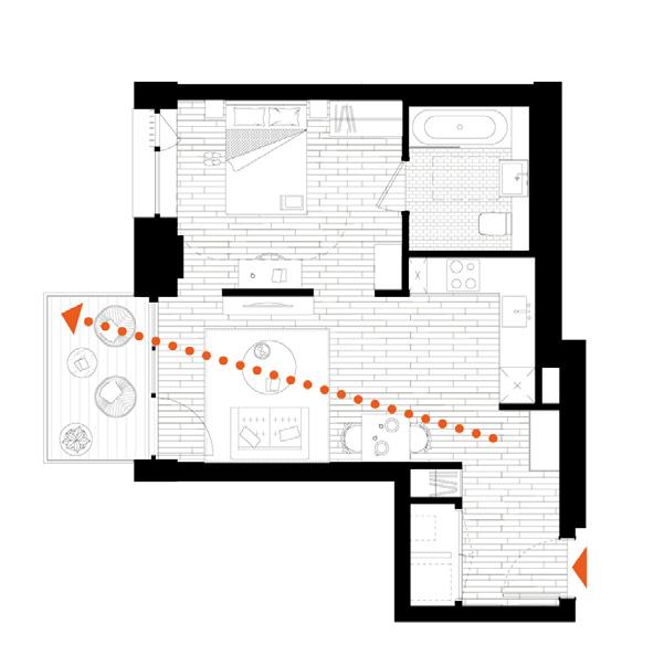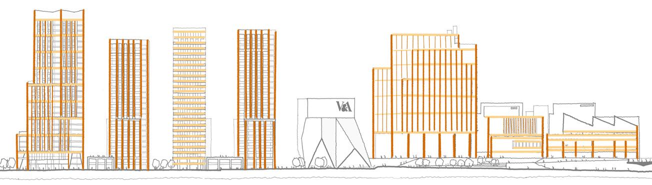 sense of community. The residential apartments are designed to create long views towards the exterior from the point of entrance. The layouts are developed to meet the spatial standards of the latest London Housing Design Guide. V & A Second Floor Layout First Floor Layout Section through the Spine Experience along the Spine Typical Apartment Layouts for 1-Bed, 2-Bed, and 3-Bed Units 1 3 1 1 2 3 4 2 2 4 4 In a Typical Apartment Ground Floor Layout