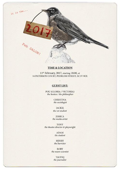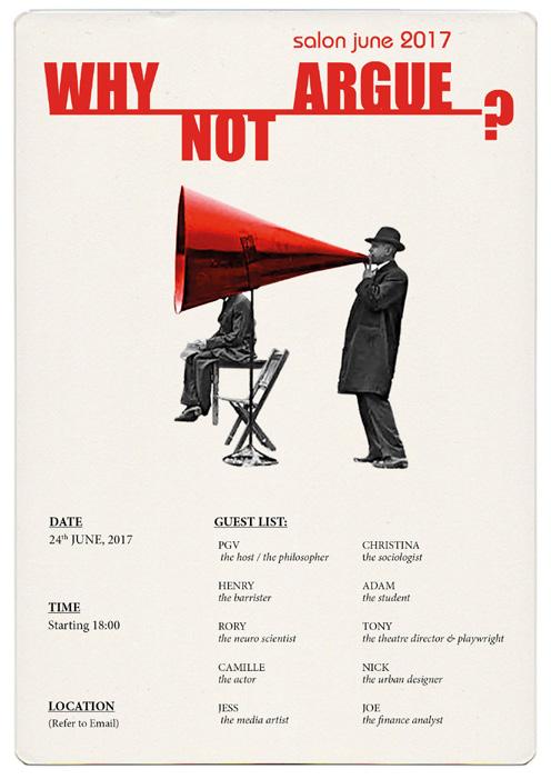 We may live in a world of unprecedented connectivity to an unlimited amount of information and news. However, that does not automatically equate to human connectivity. The question is how do we build bridges between the increasingly diverging branches of specialist knowledge to avoid ideological and intellectual echo chambers? To contribute in my own small way to generate crossdisciplinary interactions and to encourage mutual learning through conversations, I have started a quarterly private salon event. The ingredients are quite simple: six guests, one topic, one living room, over a dinner. As the host, my role is to come up with the topic, carefully curate the guest