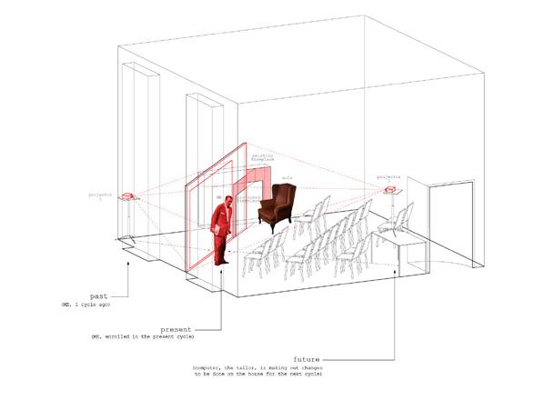 [ Interaction ] points to the act of communication and negotiation between three players - the environment, the architectural components, and the human agents. For me, interaction design is about determining the mechanisms and interfaces that govern the type of exchanges between these players and how they are to take place.