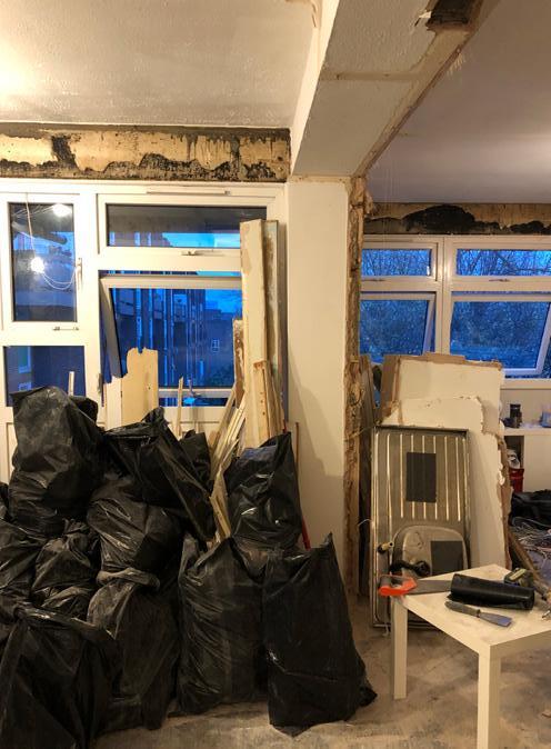 MAKING | TESTING | BUILDING HOME 001 BOILER TO REMAIN IN SITU BOXING OUT TO BE OPEN UP GAS METER TO REMAIN IN SITU EXISTING PARTITION WALLS TO BE DEMOLISHED AND REBUILT EXISTING FIXTURE TO BE DEMOLISHED SVP TO REMAIN IN SITU ELECTRICITY METER TO BE RELOCATED EXISTING RADIATOR TO BE RELOCATED EXISTING WINDOW TO BE REPLACED EXISTING DOOR TO BE REPLACED EXISTING RADIATOR TO BE RELOCATED 0 1m 2m 3m PROPOSED PLAN 35 WYNDHAM DEEDES, E2 7AU DATE: KITCHEN CORRIDOR BATHROOM [ LIVING AREA [ SLEEPING AREA ] NOTE: ALL PLAN AND WALL DIMENSIONS AND THICKNESS BASED ON ACTUAL SITE MEASUREMENTS. F/F HOB EXISTING WALL NEW WALL C 0 1m 2m 3m PROPOSED PLAN 35 WYNDHAM DEEDES, E2 7AU DATE: 2018.07.02 KITCHEN CORRIDOR BATHROOM LIVING AREA SLEEPING AREA NOTE: ALL PLAN AND WALL DIMENSIONS AND THICKNESS BASED ON ACTUAL SITE MEASUREMENTS. F/F HOB EXISTING WALL NEW WALL A variety of bespoke joinery items were developed for this project, including a three-slider sash window and a pivoting shelving unit. These components were tested and refined through fullscale prototypes. Closed Semi-Opened Opened DEMOLITION & CONSTRUCTION DESIGN DEVELOPMENT OF THE THREE-SLIDER SASH WINDOW FINAL OUTCOME 4 5 6