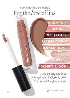 Juicy colors, saturated with hyaluronic acid, in a non-sticky glassy finish.