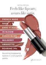 Feels like lipcare, wears like satin. Nourishing longwearing lipsticks.