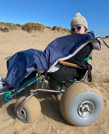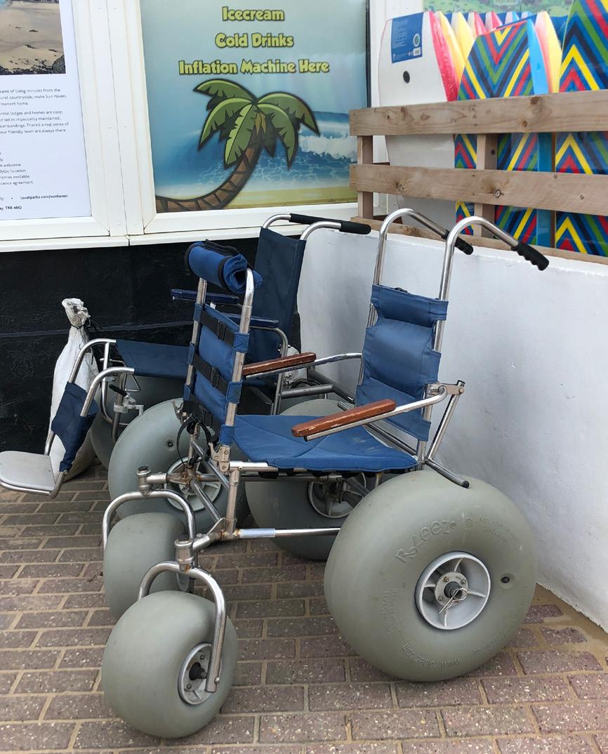 Beach wheelchairs: Sand Chairs are available from the Big Blue Surf Schoolbookings can be made in person or by calling the Big Blue Surf School 01288 331764 info@bigbluesurfschool.co.uk www.bigbluesurfschool.com