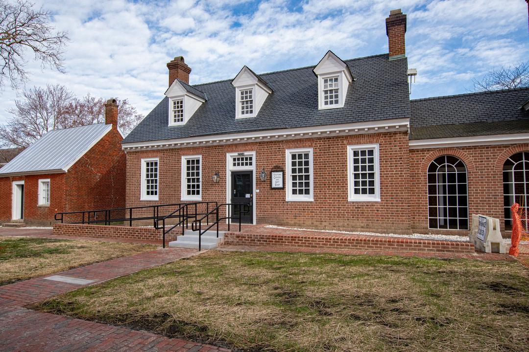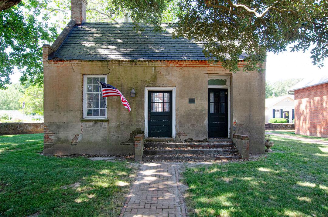 Built in 1821 on the foundation of a 1779 Clerk of the Courts office. The earlier building burned in 1820, and with it all of Gloucester's records were destroyed. An interpretive restoration now depicts a Clerk of the Courts office from the early 1800s. Beneath the brick is the original stone floor.