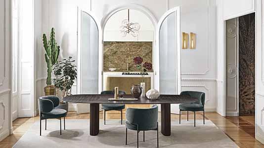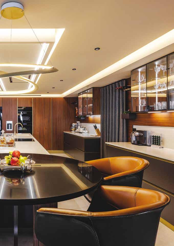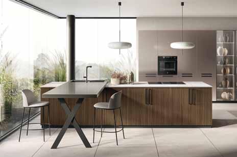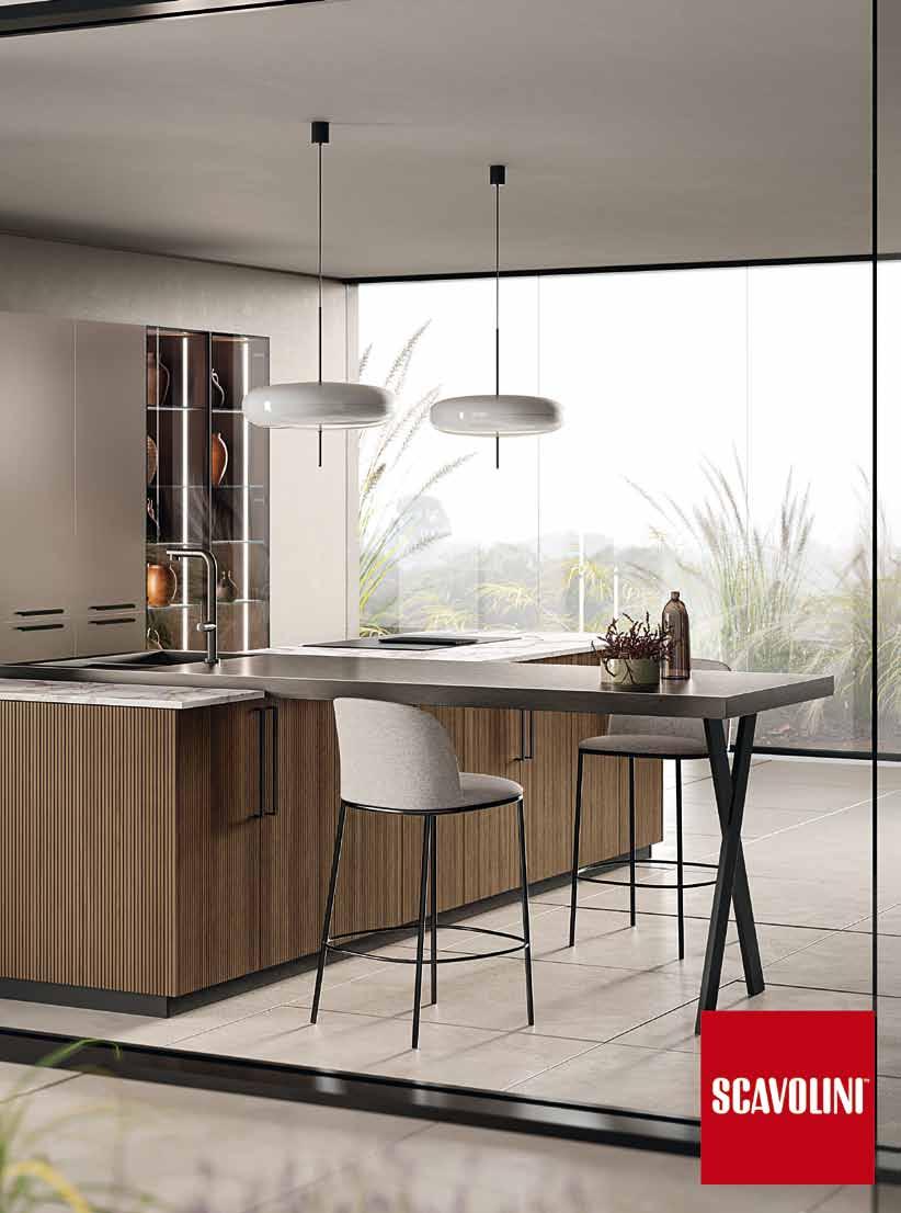 145 η υπεράνετη κουζίνα της scavolini περιλαμβάνει μια λειτουργική νησίδα εργασίας που καταλήγει σε ένα κυκλικό τραπέζι το οποίο σχεδιάστηκε ειδικά για τα καθημερινά γεύματα. η μελέτη της Boss foss και η επιλογή των φωτιστικών ολοκληρώνουν ένα μοναδικής αισθητικής σύνολο.