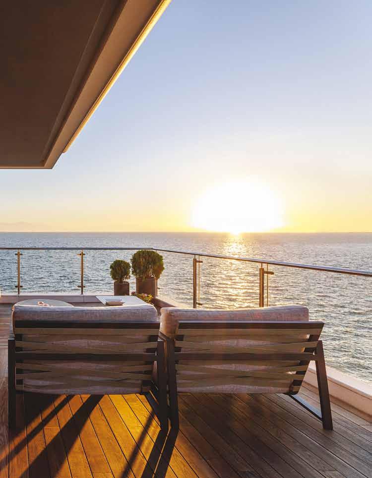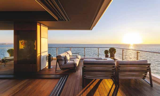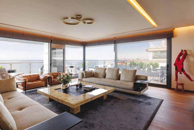 143 tα ανοίγματα εξαφανίζονται τελείως, μηδενίζοντας τα όρια μεταξύ εσωτερικού και εξωτερικού χώρου. η αίσθηση είναι μοναδική και το διαμέρισμα απολαμβάνει τη συγκλονιστική θέα στον κόλπο της Θεσσαλονίκης.