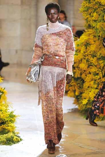 ποταμού Tweed, όπου συνήθιζε να απολαμβάνει περιπάτους, για να φανταστεί το ομώνυμο αγαπημένο της ύφασμα (τουίντ) στα χρώματα αυτού του τοπίου. «Στις βόλτες της στην εξοχή της Σκοτίας, μάζευε φτέρες και μπουκέτα λουλούδια που αποτυπώνονται στη νέα συλλογή», εξηγεί η Virginie Viard, η οποία επέλεξε για τον φετινό χειμώνα να ακολουθήσει το ελεύθερο δημιουργικό πνεύμα του “Swinging London” των ’60s. Είναι η σεζόν κατά την οποία οι όγκοι ανακηρύττονται σε νικητές, ενώ φέτος τα χρώματα αποκτούν δυναμισμό κι εκφραστικότητα! Σε μια περίοδο που υποστηρίζει την ανάδειξη της προσωπικής ταυτότητας, τα ρούχα έχουν γίνει lingua franca. Μην ξεχνάμε πως το να διατυπώνεις αυτό που θέλεις και πιστεύεις ξεκινά συχνά μέσα από αυτά που επιλέγεις να φοράς. Έτσι, η Loro Piana έχει εγκαταλείψει την προφανή ομορφιά για κάτι λιγότερο εύπεπτο κι επιμένει στην πολυτέλεια και την ξεχωριστή ποιότητά της με τρόπο ακόμη πιο δημιουργικό. To αποτέλεσμα σε ότι αφορά στα πανωφόρια της είναι το απόλυτο luxury.