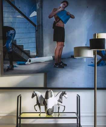 Μία ακόμη άποψη του καθιστικού δίνει έμφαση στο πληθωρικό mix & match του χώρου, που τολμάει και «δένει» πολλά και διαφορετικά design στοιχεία με ευρηματικό τρόπο. σε μια γωνιά της τραπεζαρίας, μπροστά από το εντυπωσιακό έργο του mohamed Bourouissa, εκτίθεται το equus πορσελάνινο βάζο της vista alegre, που υπογράφει ο δημιουργικός ιδιοκτήτης της κατοικίας. G |home