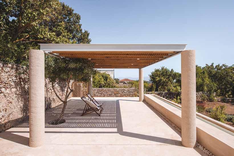 και κληρονόμος, είναι κάτι πέρα από ένα απλό οικοδόμημα. Γι’ αυτήν ξεχωρίζει ως σημείο αναφοράς στις ρίζες της και στοιχείο αυτοπροσδιορισμού. Είναι ο τόπος στον οποίο επιστρέφει κάθε καλοκαίρι η οικογένεια που πλέον ζει μόνιμα στην Αυστραλία. Η ίδια ανέθεσε στην ομάδα R.C.Tech να ανασχεδιάσει εσωτερικά το κτίσμα, χαρίζοντάς του μια σύγχρονη προοπτική. Το έργο ξεκίνησε με τη λεπτομερή αποτύπωση του κτιρίου και των μορφολογικών στοιχείων που το καθιστούν μοναδικό. Η νέα αρχιτεκτονική προσέγγιση σεβάστηκε την ιδιαιτερότητα και το ευαίσθητο περιβάλλον του οικισμού και παράλληλα εξασφάλισε την ενσωμάτωση στοιχείων που το αναβάθμισαν λειτουργικά και αισθητικά. Στο ισόγειο, τα «βόλτα» διατήρησαν την ακεραιότητά τους και στεγάζουν πλέον χώρους ύπνου, καθιστικού, κουζίνας και λουτρών. Ο ημιυπαίθριος χώρος που εξυπηρετούσε παλιά στο φούρνισμα έκλεισε με μια μεταλλική τζαμαρία και μετατράπηκε σε χολ και κουζίνα. Διαμπερή ανοίγματα δημιουργήθηκαν στον εσωτερικό διαμήκη τοίχο του καθιστικού, για να διοχετευθεί φυσικό φως στα σημεία πίσω από αυτόν. Οι τοίχοι επιχρίσθηκαν μέχρι το ύψος της γένεσης των θολωτών, ενώ η λιθοδομή αναδείχθηκε με επιμελημένο βαθύ αρμολόγημα. Στο επίπεδο του ορόφου, καταργήθηκαν όλα τα μικρά επάλληλα δωμάτια και στη θέση