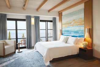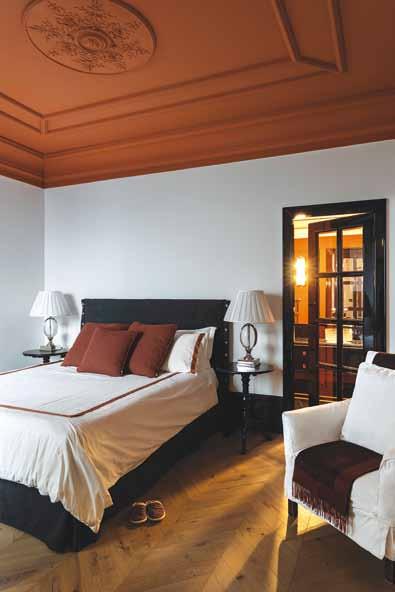 ή φίλους που εκτιμούν την πολυτέλεια των ξεχωριστών μπάνιων, ενώ το διπλανό με το τζάκι έχει ψηλά παράθυρα με φεγγίτες, που πλημμυρίζουν τον δροσερό, λευκό χώρο με το φως του ήλιου. Οι εσωτερικοί χώροι αποτίνουν φόρο τιμής στην ελληνική δεξιοτεχνία και κληρονομιά, καθώς τα έπιπλα κατασκευάστηκαν από ντόπιους ξυλουργούς ή αγοράστηκαν