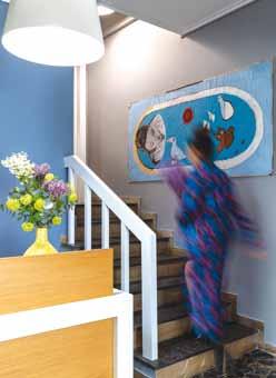 Το δάπεδο αποκαταστάθηκε με τα αυθεντικά πατινιώτικα κεραμικά πλακίδια, ενώ χειροποίητα υφάσματα και κεντήματα συμπλήρωσαν τους χώρους χωρίς να τους «πολιορκούν».