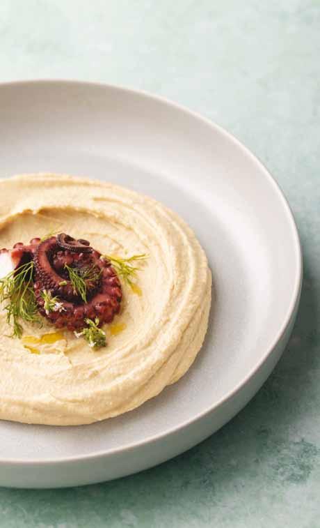 GLOW F l AVO r EDI t ION 158 Φάβα με χταπόδι ξιδάτο Χταπόδι και φάβα σε ένα πιάτο που συνδυάζει γη και θάλασσα με μοναδικό τρόπο! ΥΛΙΚΑ ΓΙΑ 4-6 ΑΤΟΜΑ 1 κιλό χταπόδι 50 γρ. εξαιρετικά παρθένο ελαιόλαδο Χανίων Κρήτης Νώμα 50 γρ. ξίδι 1 φύλλο δάφνης 1 σκελ. σκόρδου ψιλοκομμένη 1 κρεμμύδι κόκκινο, σε φέτες 5 γρ. ρίγανη ξερή Νώμα Πιπέρι Γ ΙΑ ΤΗ ΦΑ β Α 300 γρ. Φάβα κομμένη Θεσσαλίας Νώμα 800 γρ. νερό 1 κρεμμύδι ξερό 1 κ.σ. εξαιρετικά παρθένο ελαιόλαδο Χανίων Κρήτης Νώμα Αλάτι & Πιπέρι Γ ΙΑ ΤΟ ΣΕ ρβ Ι ρ ΙΣΜΑ Χυμός λεμονιού Eξαιρετικά παρθένο ελαιόλαδο Χανίων Κρήτης Νώμα Ε ΚΤΕΛΕΣΗ Θα χρησιμοποιήσουμε ένα ρηχό σκεύος με καπάκι για το μαγείρεμα του χταποδιού, το οποίο αφήνουμε πρώτα να έρθει σε θερμοκρασία δωματίου. Το βάζουμε στην κατσαρόλα χωρίς λάδι, προσθέτουμε το φύλλο δάφνης, σκεπάζουμε με το καπάκι και το αφήνουμε σε χαμηλής έντασης φωτιά να βράσει με τα δικά του υγρά. Το χταπόδι είναι έτοιμο όταν είναι μαλακό, και συνήθως μία ώρα μαγειρέματος είναι αρκετή. Είναι σημαντικό να κάνουμε υπομονή και να μην ανοίγουμε το καπάκι. Σ’ ένα μπολ ανακατεύουμε το ελαιόλαδο, το ξίδι, το σκόρδο, το κρεμμύδι, το πιπέρι και τη ρίγανη. Όταν ψηθεί, προσθέτουμε το μείγμα του ελαιόλαδου και το αφήνουμε να έρθει σε θερμοκρασία δωματίου πριν σερβίρουμε. Παράλληλα, ετοιμάζουμε τη φάβα. Την τοποθετούμε σ’ ένα σουρωτήρι και ξεπλένουμε σε τρεχούμενο νερό, μέχρι να τρέχει διαυγές. Σε μία κατσαρόλα βάζουμε τη φάβα σε αρκετό κρύο νερό για να τη σκεπάσει 3-4 δάχτυλα, ανακατεύουμε με ένα κουτάλι, προσθέτουμε το κρεμμύδι καθαρισμένο και ολόκληρο, φέρνουμε σε βρασμό και μαγειρεύουμε με το καπάκι κλειστό σε μέτριας έντασης φωτιά για μία τουλάχιστον ώρα ή μέχρι το κρεμμύδι να μαλακώσει και η φάβα να χυλώσει. Όταν η φάβα είναι έτοιμη, σουρώνουμε και κρατάμε τα υγρά που τυχόν έχουν μείνει. Περνάμε τα όσπρια και το κρεμμύδι (που έβρασε μαζί) στο μούλτι μέχρι να έχουμε μία ωραία κρέμα. Αναδεικνύουμε τη γεύση με αλάτι, χυμό λεμονιού και ελαιόλαδο. Σερβίρουμε με το χταπόδι που ετοιμάσαμε. β ΗΜΑ 1 β ΗΜΑ 2 β ΗΜΑ 3 Φάβα κομμένη Θεσσαλίας, lidl Ελλάς