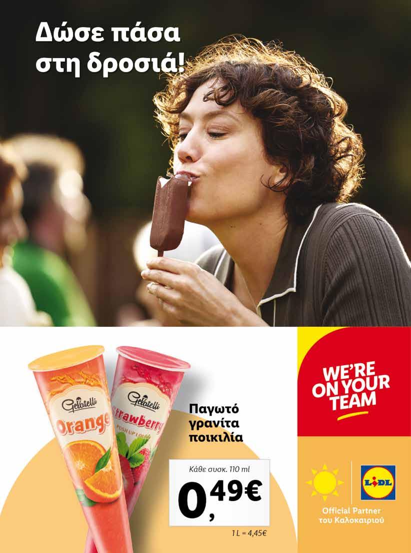 Από την Ελληνική Γη στο Πιάτο Μπαίνουμε στην κουζίνα με βιώσιμη προσέγγιση και άκρως καλοκαιρινή διάθεση κι ετοιμάζουμε συνταγές με υψηλής ποιότητας προϊόντα που επιλέγουμε από τη Lidl Eλλάς. ΦΩΤΟΓΡΑΦΙΑ ΕΚΤ Ο ΡΑΣ ΝΙΚΟ λ ΑΚΗΣ PΟV S t UDIO Σ υ ΝΤΑΓΕΣ ΔΗΜΗΤΡΗΣ ΚΟΠΑΡΑΝΗΣ Καλοκαίρι, και το σκηνικό αλλάζει. Τα σπίτια ανοίγουν κι αγαπημένα πρόσωπα συγκεντρώνονται και πάλι γύρω από το τραπέζι. Μόνο που τώρα το μενού είναι διαφορετικό. Το καλοκαίρι στην Ελλάδα θέλουμε πιάτα ελαφριά, με γεύσεις που θα μας δροσίσουν αφού ο καιρός ζεσταίνει. Απαραίτητο συστατικό; Τα επιλεγμένα υλικά από τη Lidl Ελλάς, η πιο βιώσιμη γκάμα προϊόντων στην καλύτερη τιμή. Η Lidl Ελλάς δεσμεύεται για τη συνεχή προστασία και την υπεύθυνη χρήση πόρων σε ολόκληρη την αλυσίδα αξίας της. Αυτό συνεπάγεται την προμήθεια πρώτων υλών με πιο φιλικό προς το περιβάλλον τρόπο, σύμφωνα με το μοντέλο της κυκλικής οικονομίας, που εξασφαλίζει την αποφυγή και τη μείωση της σπατάλης τροφίμων, καθώς και την προσεκτική χρήση του γλυκού νερού. H Lidl Ελλάς τηρεί ήδη από σήμερα την υπόσχεσή της. Τοπικά, πανελλαδικά και παγκόσμια, με δέσμευση και διαφάνεια.