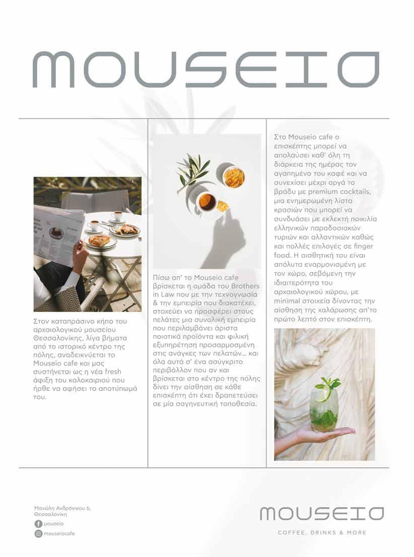151 MediterraneanCosmosOfficial @mediterraneancosmosofficial www.mediterraneancosmos.gr Mediterranean Cosmos, 11ο χλμ. Εθνικής Οδού Θεσσαλονίκης - Νέων Μουδανιών, τηλ. 2310 489571