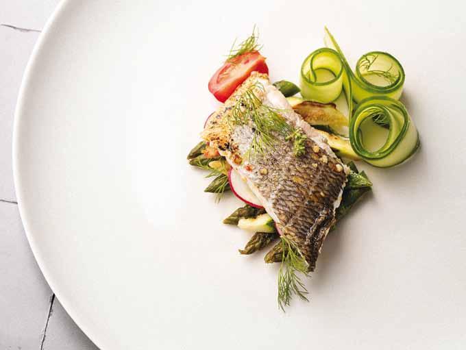 159 Λαβράκι με σπαράγγια και κολοκυθάκια Νομίζετε πως το μαγείρεμα του ψαριού στο σπίτι είναι μπελάς; Δοκιμάστε αυτήν τη συνταγή και θα αλλάξετε γνώμη. ΥΛΙΚΑ ΓΙΑ 4-6 ΑΤΟΜΑ