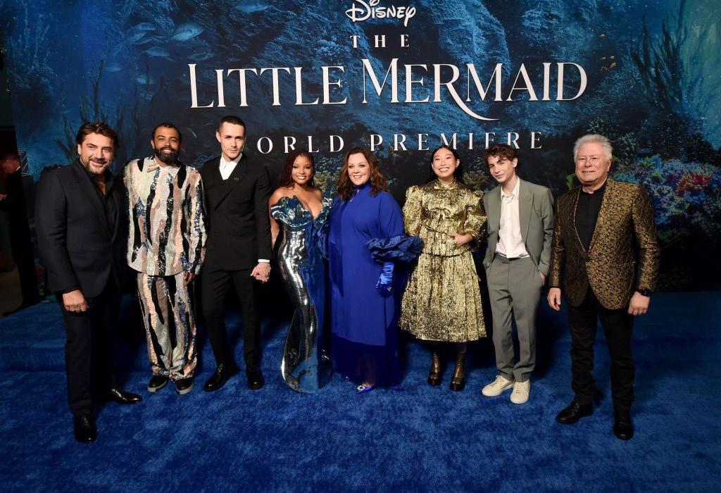 (L-R) Javier Bardem, Daveed Diggs, Jonah Hauer-King, Halle Bailey, Melissa McCarthy, Awkwafina, Jacob Tremblay and Alan Menken attend the World Premiere of Disney’s live-action feature “The Little Mermaid” at the Dolby Theatre in Los Angeles, California on May 08, 2023. (Photo by Alberto E. Rodriguez/Getty Images for Disney)