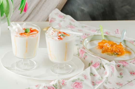 Ρυζόγαλο vegan με γάλα καρύδας και καραμελωμένες ίνες