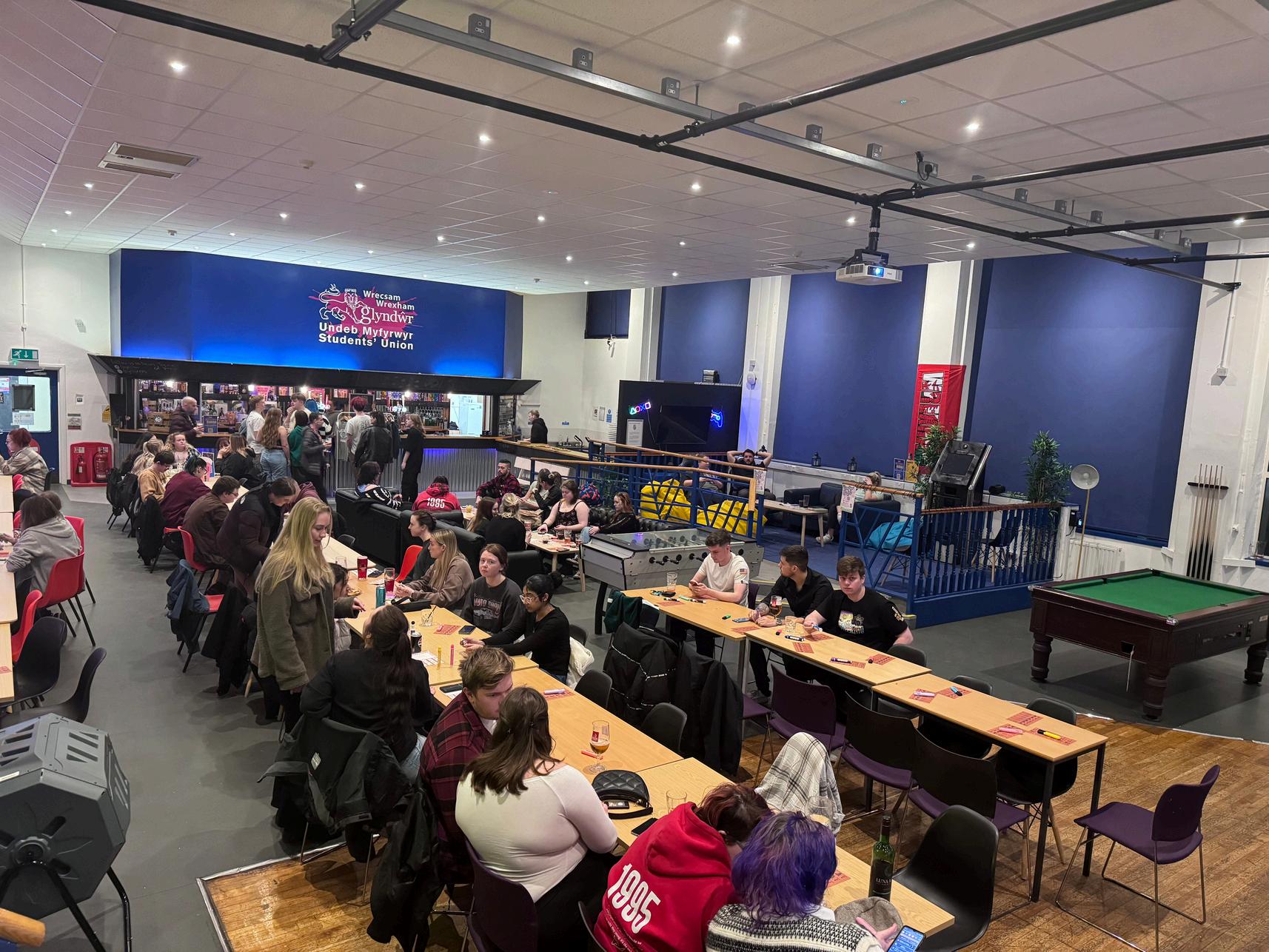 This year has seen a huge increase in events and numbers through the door of the Students’ Union communal area – known as Glyn’s Bar & Lounge. The main points that stand out from the previous year are an increase of an extra 14 general student/staff events, 12 society/sports-led events and the introduction of Wrexham match days, which has seen a staggering 4100 customers through the doors over a period of 27 matches. Of the total events recorded, there has been an increase of 70 events overall which is an exact 100% increase from the previous year.