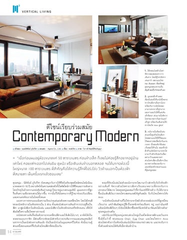 Contemporary Modern ิ น ั ธ์ ภูรป ิ รีชา • ตกแต่ง : Agora Co., Ltd. • เรื่อง : พงศ์ภท ั ร • ภาพ : วิภาวดี พิสท ุ ธิส ์ ริ อ ิ ภิญญา • เจ้าของ : คุณนิตพ