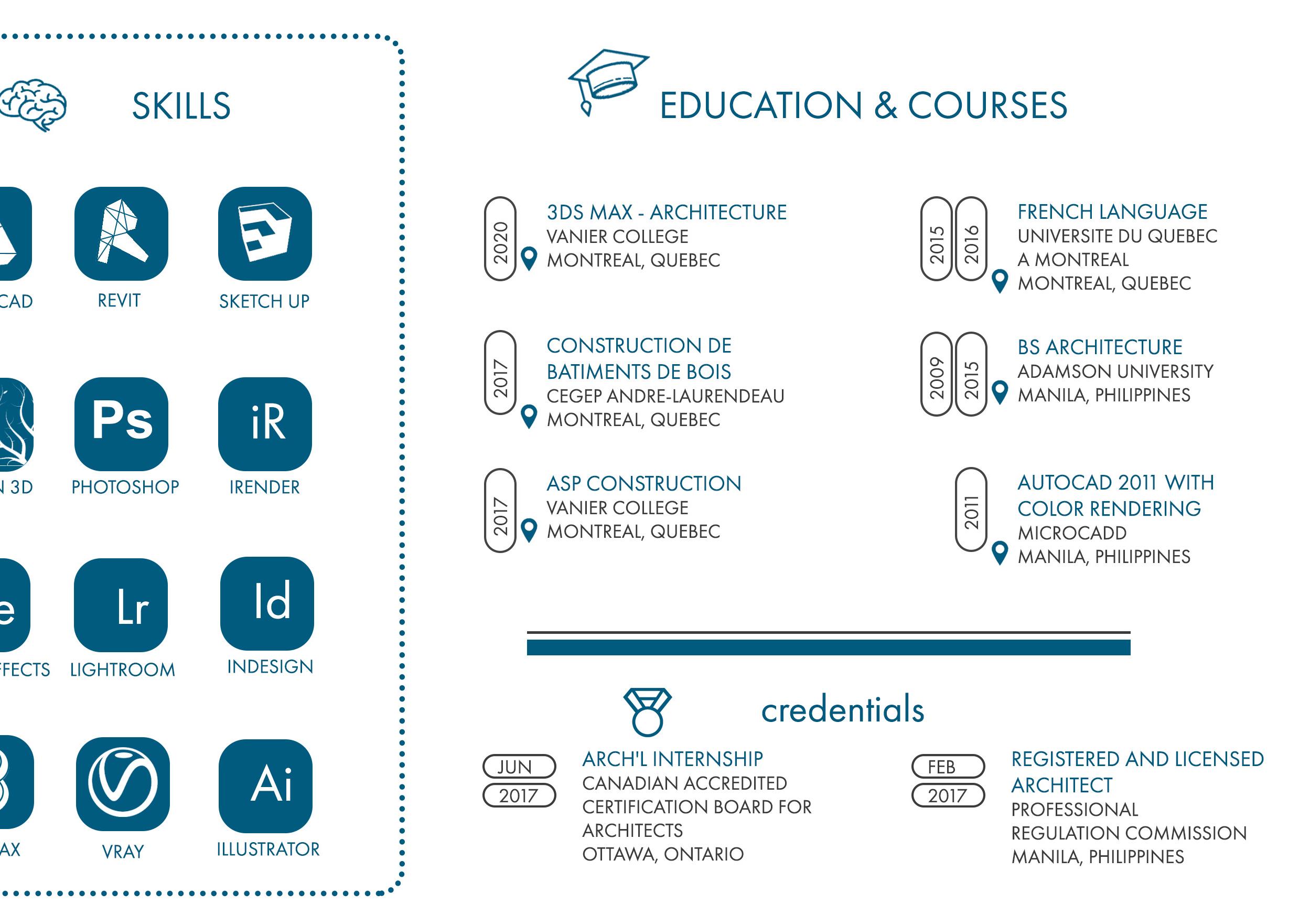 Professional experince since 2012, I am an enthusuastic, creative and critical thinker that working in the field of architecture. My experience ranges from residential, commercial use and renovation. Had an extensive experience in project management, building systems/material, and technical skills. I am capable of working under pressure, adapting to changing situations and challenges. I am now pursuing an architect’s license through the Canadian Accreditation Certification Board for Architects (CACB).