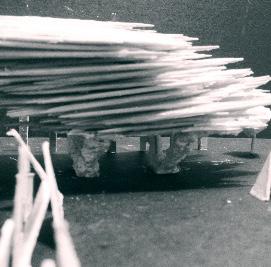 The material use are toothpicks, black and white chipboard, and papers as materials for this project demonstrates the originality and ingenuity inherent in architectural expression. These seemingly ordinary materials are converted into containing of artistic expression, each with its own story and meaning. Meanwhile, uses black and white chipboard as a canvas to paint a story of contrasts: light and dark, solidity and nothingness. These surfaces with layers of meaning, making them beyond the into realms of imagination and contemplation.