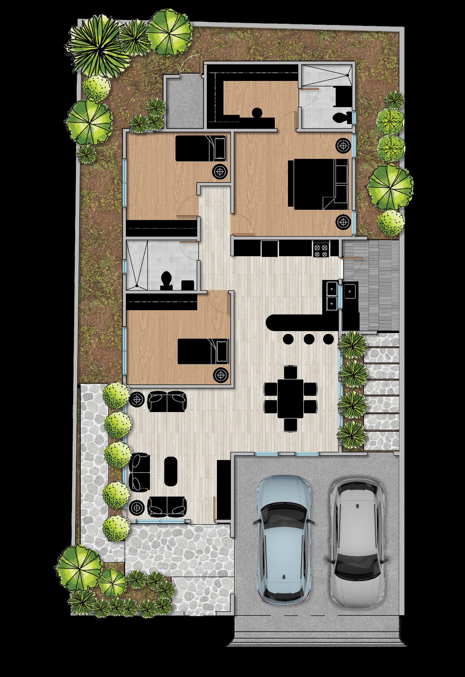 1.) ENTRY 2.) LIVING AREA 3.) DINING AREA 4.) T&B 5.) TERRACE 6.) GARDEN 7.) STAIRS 8.) DRY KITCHEN 9.) WET KITCHEN 10.) GUEST BEDRM 11.) LAUNDRY AREA 12.) BEDROOM #1 13.) BEDROOM#2 14.) STORAGE AREA 15.) T&B 16.) MASTERS’ BEDRM 17.) BALCONY