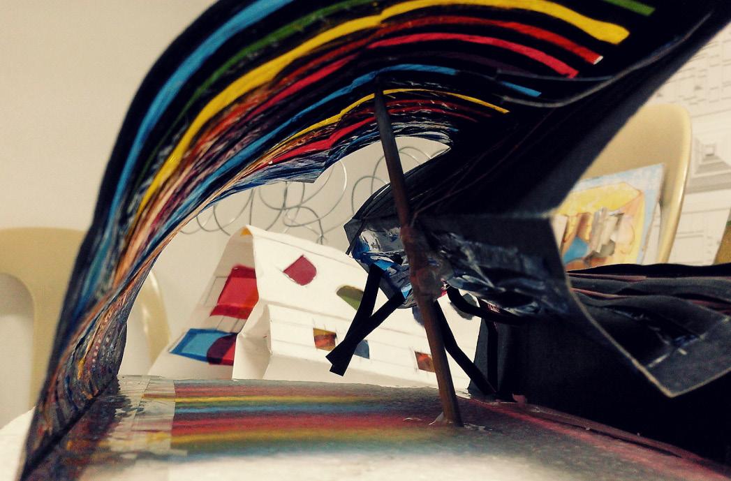 The materials used in this project are deliberate and purposeful, with black colored paper and cellophane chosen for their particular qualities in sculpting and modulating light. Black paper, recognized for its capacity to absorb light, creates a stunning backdrop for the interplay of light and shadow. Cellophane, on the other hand, is a fragile and translucent substance that transmits light. This contrast of opacity and translucency sets the stage for a lively investigation of light’s transforming power.
