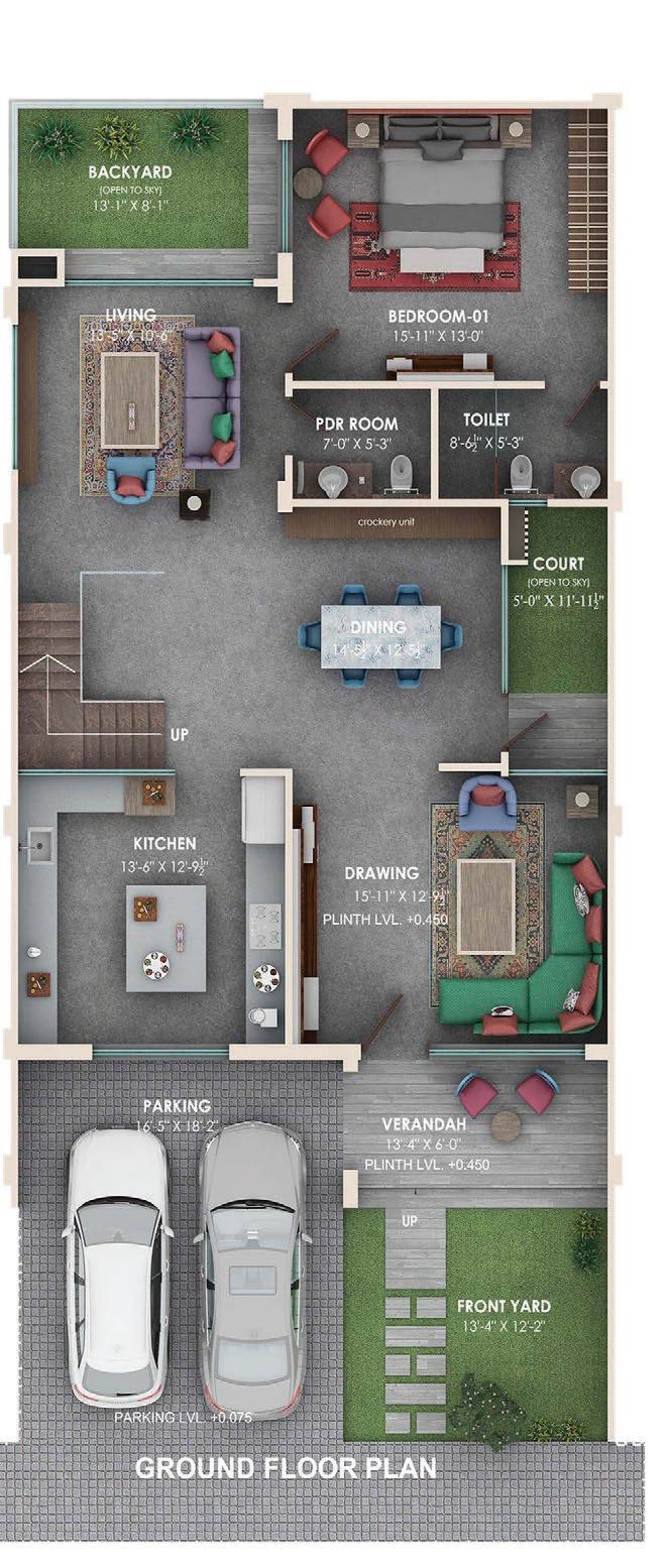 21 TV UNIT STUDY TABLE TV UNIT BEDROOM 3 13'-0" X 11'-2" STUDY TABLE TV UNIT STUDY TABLE DRESSER DRESSER TOILET 8'-0" X 5'-0" DRAWING/DINNING 34'-2" X 13'-0" KITCHEN 9'-0" X 9'-3" BEDROOM 1 13'-0" X 11'-2" PARKING 9'-0" X 14'-2" COURT 7'-8" X 5'-9½" UP VERANDAH 4'-0" WIDE STORE PARKING 9'-0" X 14'-2" VERANDAH 4'-0" WIDE BEDROOM 2 13'-0" X 17'-0" TOILET 8'-0" X 5'-0" COURT 7'-8" X 5'-9½" DRESS/ STORE 8'-0" X 7'-0" DRESS 8'-0" X 7'-0" KITCHEN 9'-5" X 10'-3½" SHOWER SHOWER SOFA SIDE TABLE up dn up POOJA SPACE 8'-3" X 1'-6" TV UNIT R3 LVL+0.0 LVL+1725 LVL-1265 LVL+1525 LVL+0.0 LVL+1525 LVL+1525 LVL+1525 LVL-835 LVL-4085 LVL+1450 RAMP LVL-1035 LVL-950 125 870 150 LVL+1220 1800 230 1050 2000 LVL+1525 LVL+1525 LVL+0.0 LVL+1725 LVL-1265 LVL+1525 LVL+0.0 LVL+1525 LVL-835 LVL-4085 LVL+1450 RAMP LVL-1035 LVL-950 125 870 150 LVL+1220 1800 230 1050 2000 3025 3025 2625 8675 450 150 300 ROAD LVL.±0.00 m. PLINTH LVL.+450 m. DRI.LVL.+150 V-02 115 150 150 02 Sample Villa 400 25 25 100 300 50 V-01 600