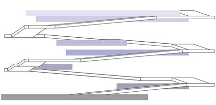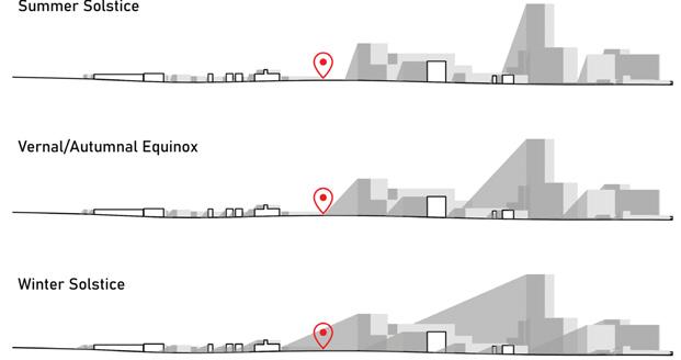 The fin depth varies for each side of the building, changing for different orientations to maximize passive heating and diffuse lighting. The spaces between vertical fins are filled to depending on the program of each floor and sun exposure.