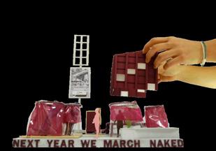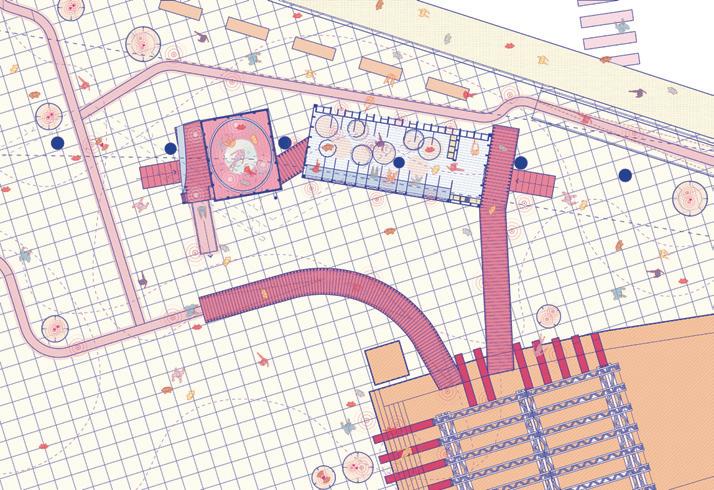 Throughout NEXT YEAR WE MARCH NAKED, we attempt to challenge norms, stopping not even with architectural graphic representation. Trying to bring fun, humour, and maximalism, we diverge from traditional and normative architecture drawings. Throughout the project’s drawings and renderings you will find representations of the naked human body, underbelly axometric views of buildings , full moons (literally and figuratively) and even a butt north arrow.