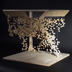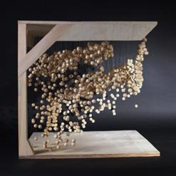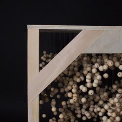 1027 is a 1:1 analysis and interpretation of a 8 cubic feet site located on the French River, Ontario. The digital process of the project included a photogrammetry model of the site that was converted from a mesh to a polygonal surface, then to a point cloud that was recreated with 1000+ wooden beads hung from a plywood structure.