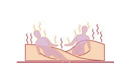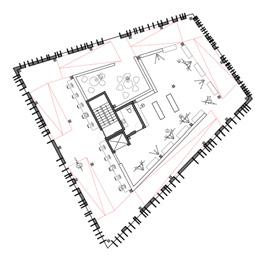 The two main elements of the sauna is it’s maroon colouring and radiant heating piece. Maroon is devised in this project as a sultry, seductive colour that subverts a typical wooden sauna, as well as the surrounding public space. The radiant seat is accessed from inside and outside the sauna, and focuses on heating bodies instead of architectural space. DRAWING LABEL
