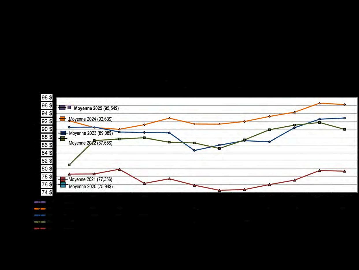Prix payé aux producteurs selon la moyenne mensuelle des composantes provinciales