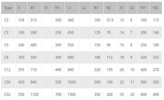 Standard shackles, Wide Body, Super shackles, D-type and specials with capacity up to 2000 T