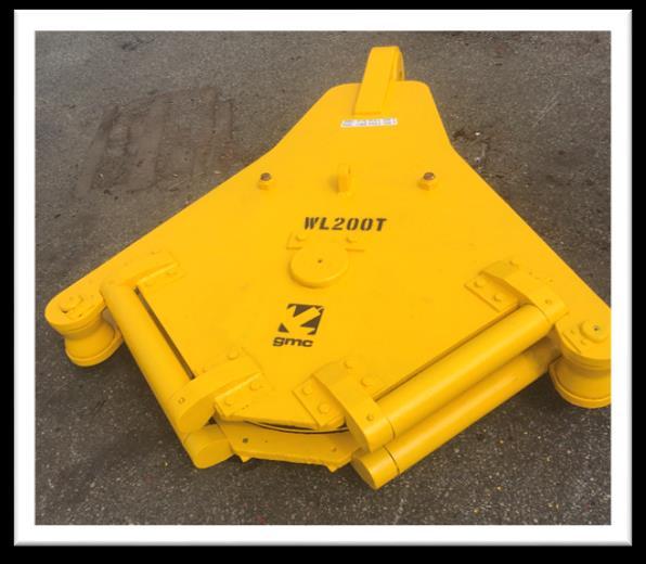 50 Ton capacity lifting tool for pulling of piles, with ROV operated locking.