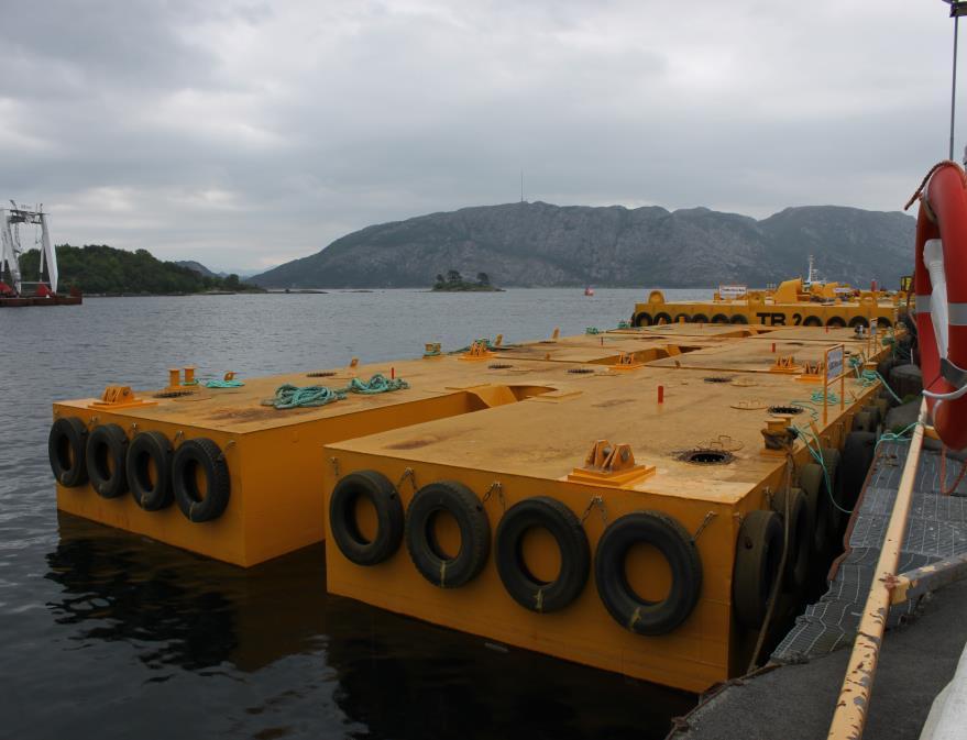 6 pieces Heavy Duty Tension Barges = 14,5 x 20 x 3 meter. Net weight 150 Ton, Net buoyancy 770 Ton