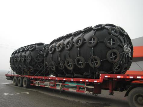 Yokohama type Air fenders Length 5.0m ø2.9m, weight 1400kg inclusive tyre net