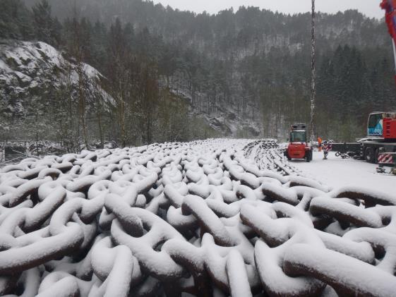 20.000 meter offshore quality K4 / R4 anchor chain and components, 76, 82 and 120 mm diameter.