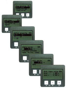 Vertical movement of the float is transmitted throught a measuring wire to the indicating unit, in which the measuring wire is wound around a tape pulley kept under constant torque by constant spring. the vertical movement is converted into rotation of the tape pulley in this way. This rotation is transmitted through a gear system to an indicator pointer which reads the liquid level on a scale dial of indicating unit.