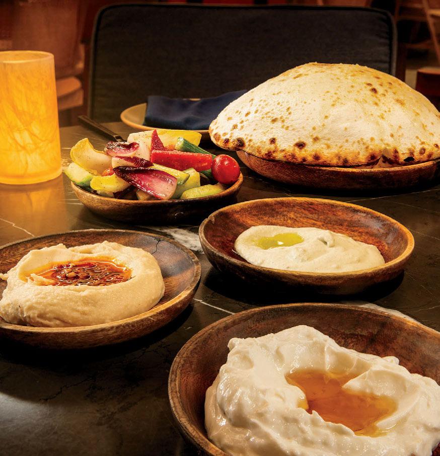 For brunch, there are plenty of delicious breakfast items like avocado toast, smoked salmon and ricotta pancakes, but you’ll want to start with the mezze platter, a shareable appetizer for the whole table, with whipped eggplant, whipped ricotta and white bean dip—all served with oven-roasted puccia bread, which comes out puffy and tender. You might also want to indulge in the grilled octopus, served with hearts of palm and red onion.